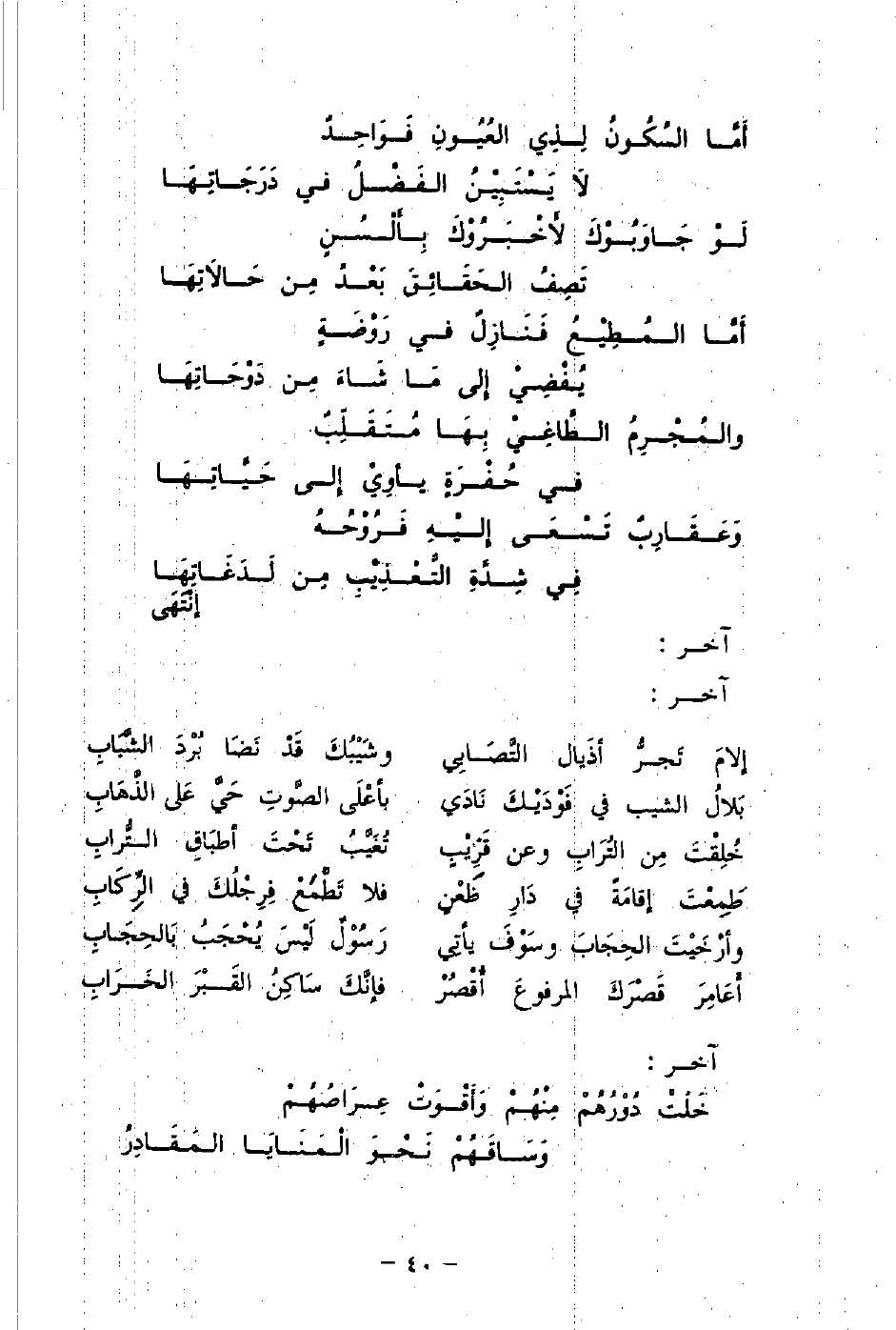 أعَامِرَ قَصْرَكَ المرفوعَ أَقْصِرْ ... فإنَّكَ سَاكِنُ القَبْرَ الخَرَابِ