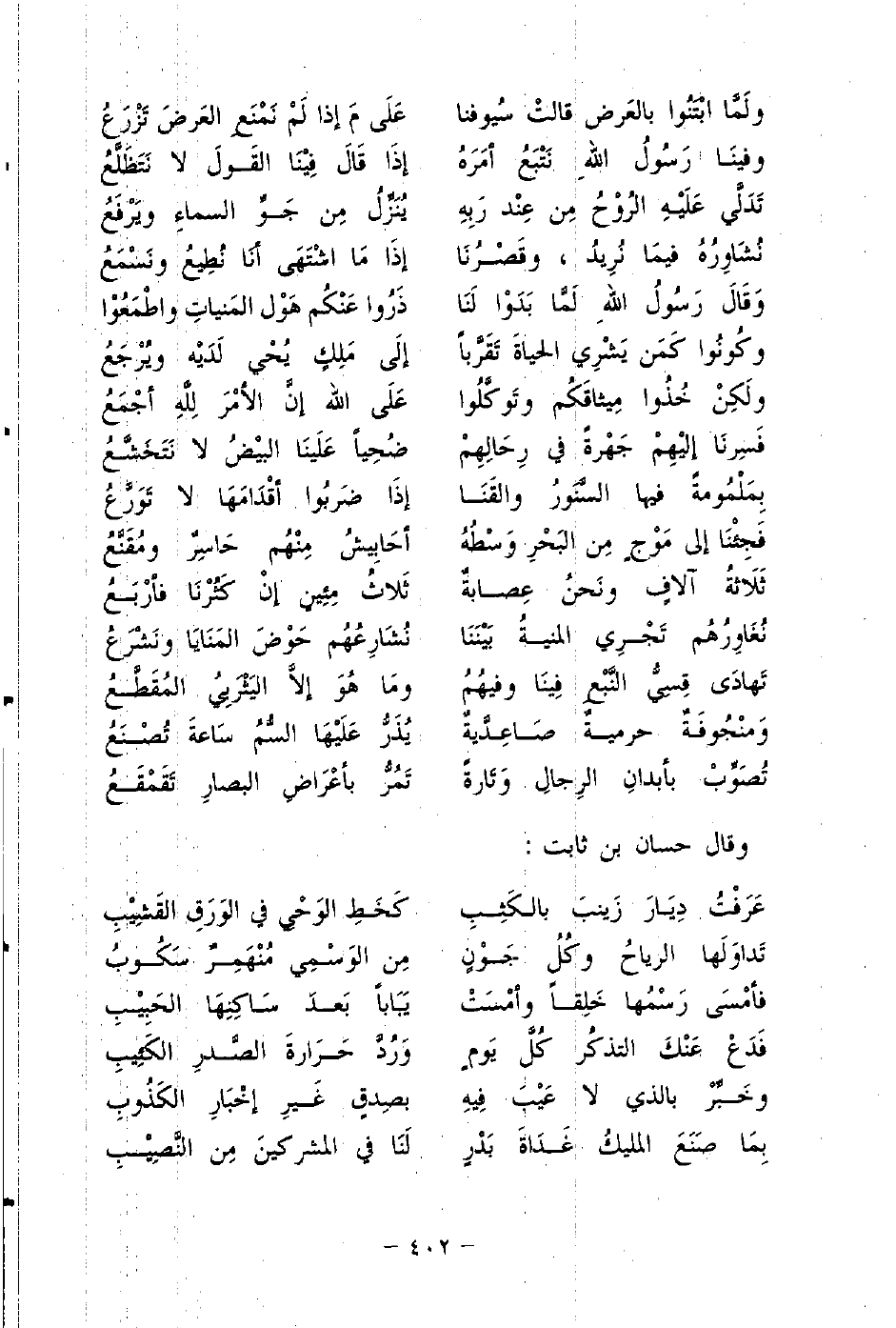 وَقَالَ رَسُولُ اللهِ لَمَّا بَدَوا لَنَا ... ذَرُوا عَنْكُم هَول المَنياتِ واطْمَعُوا