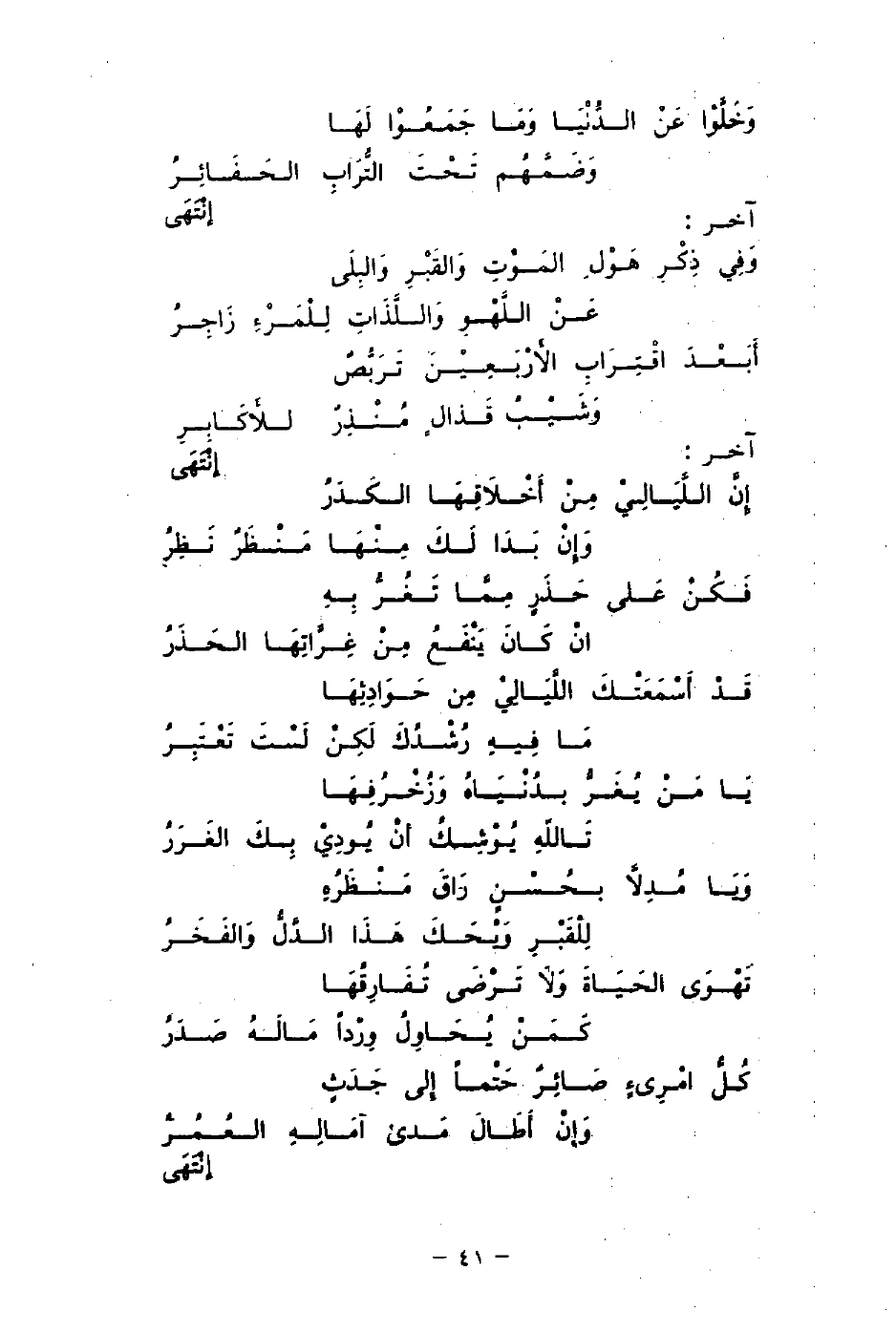 وَفِي ذِكْرِ هَولِ المَوتِ وَالقَبْرِ وَالبِلَى ... عَنْ اللَّهْوِ وَاللَّذَاتِ لِلْمَرْءِ زَاجِر