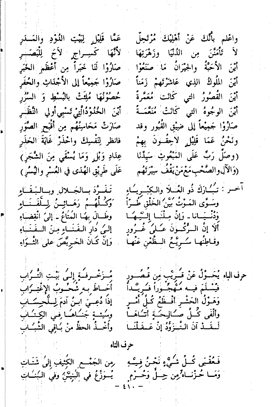 ونَحْنُ عَمَا قَلِيلٍ لاحِقُونَ بِهِمْ ... فانظر لِنَفْسِكَ واحْذَرْ غَايَةَ الحَذَرِ