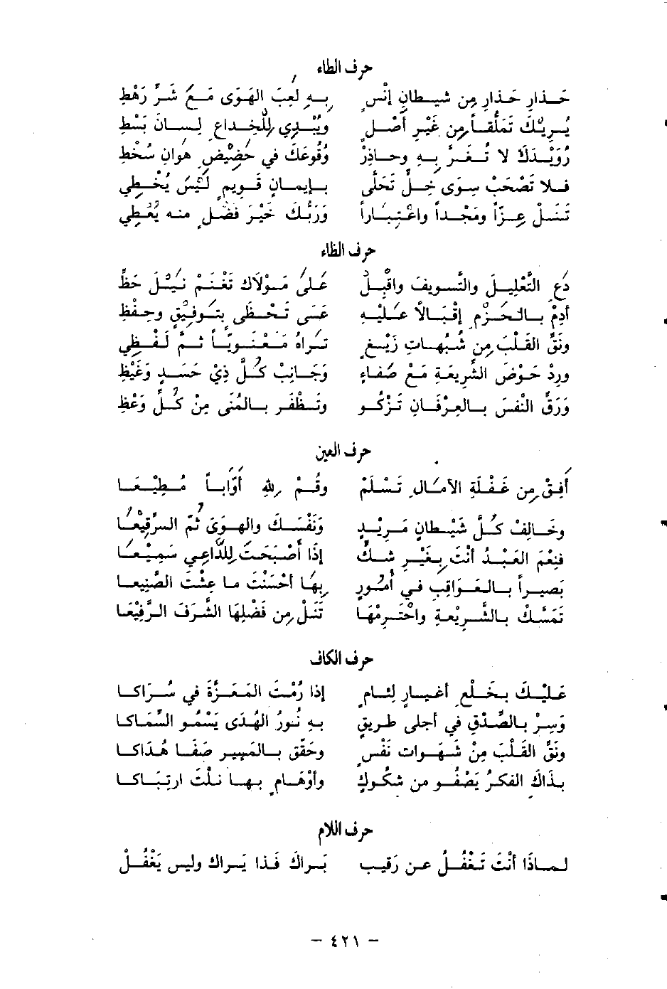 ونَقِّ القَلْبَ مِن شُبُهاتِ زَيغٍ ... تَراهُ مَعْنويًّا ثمَّ لَفْظِي