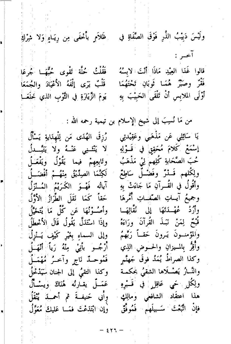 يا سَائِلِي عَن مَذْهَبي وعَقِيدتِي ... رُزِقَ الهُدَى مَن لِلْهِدَايةِ يَسْأَلُ