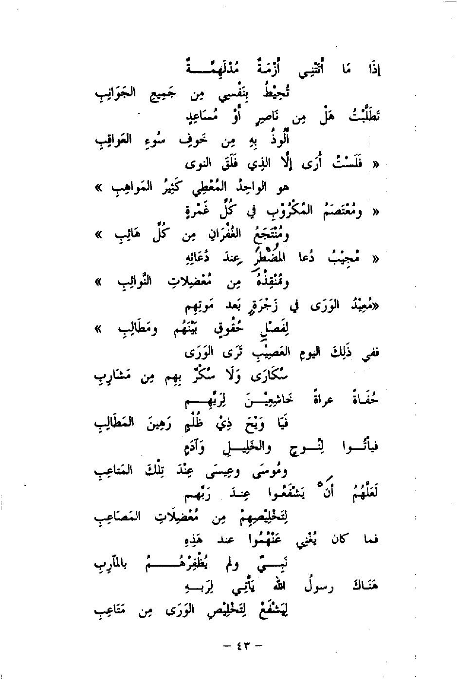 «فَلَسْتُ أَرَى إِلاَّ الذِي فَلَقَ النوى ... هو الواحِدُ المُعْطِي كَثِيرُ المَواهِبِ»