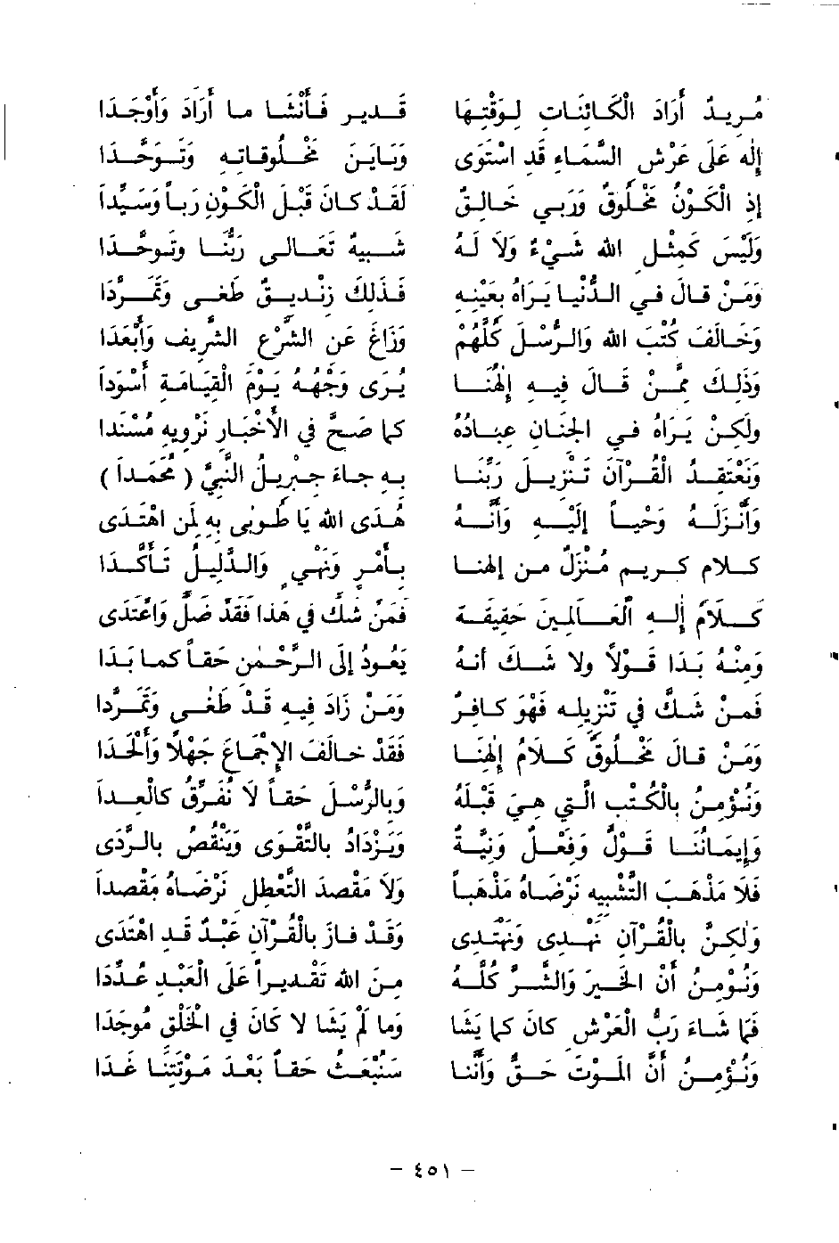 وَلَيسَ كَمِثْلِ الله شَيءٌ وَلَا لَهُ ... شَبيهٌ تَعَالى رَبُّنَا وتَوحَّدَا