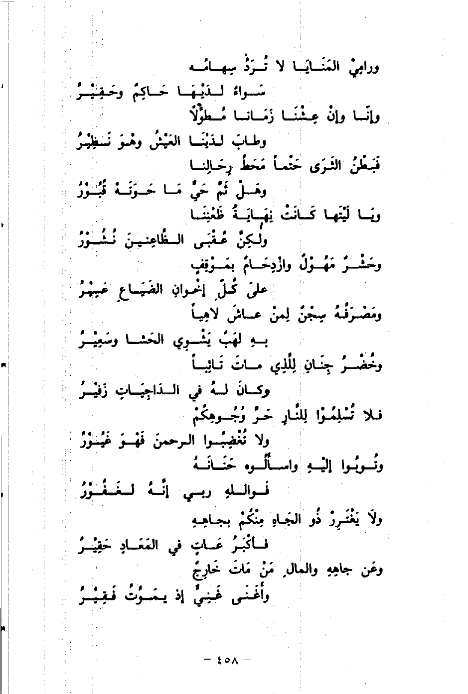 وخُضْرُ جِنَانِ لِلَّذِي ماتَ تَائِبًا ... وكانَ لهُ في الدَّاجِيَاتِ زَفيرُ