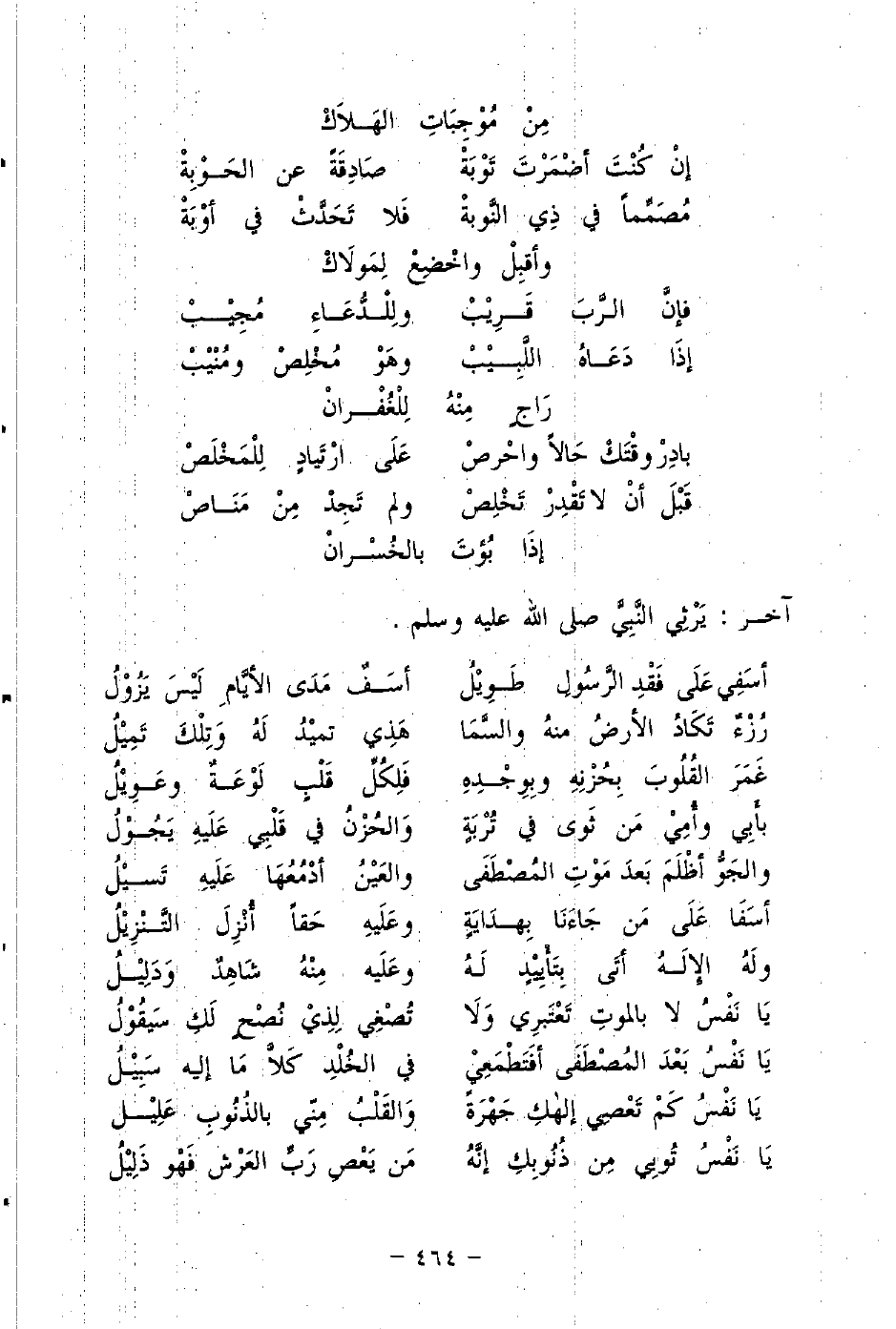 آخر يَرْثِي النَّبِيَّ صلى الله عليه وسلم: