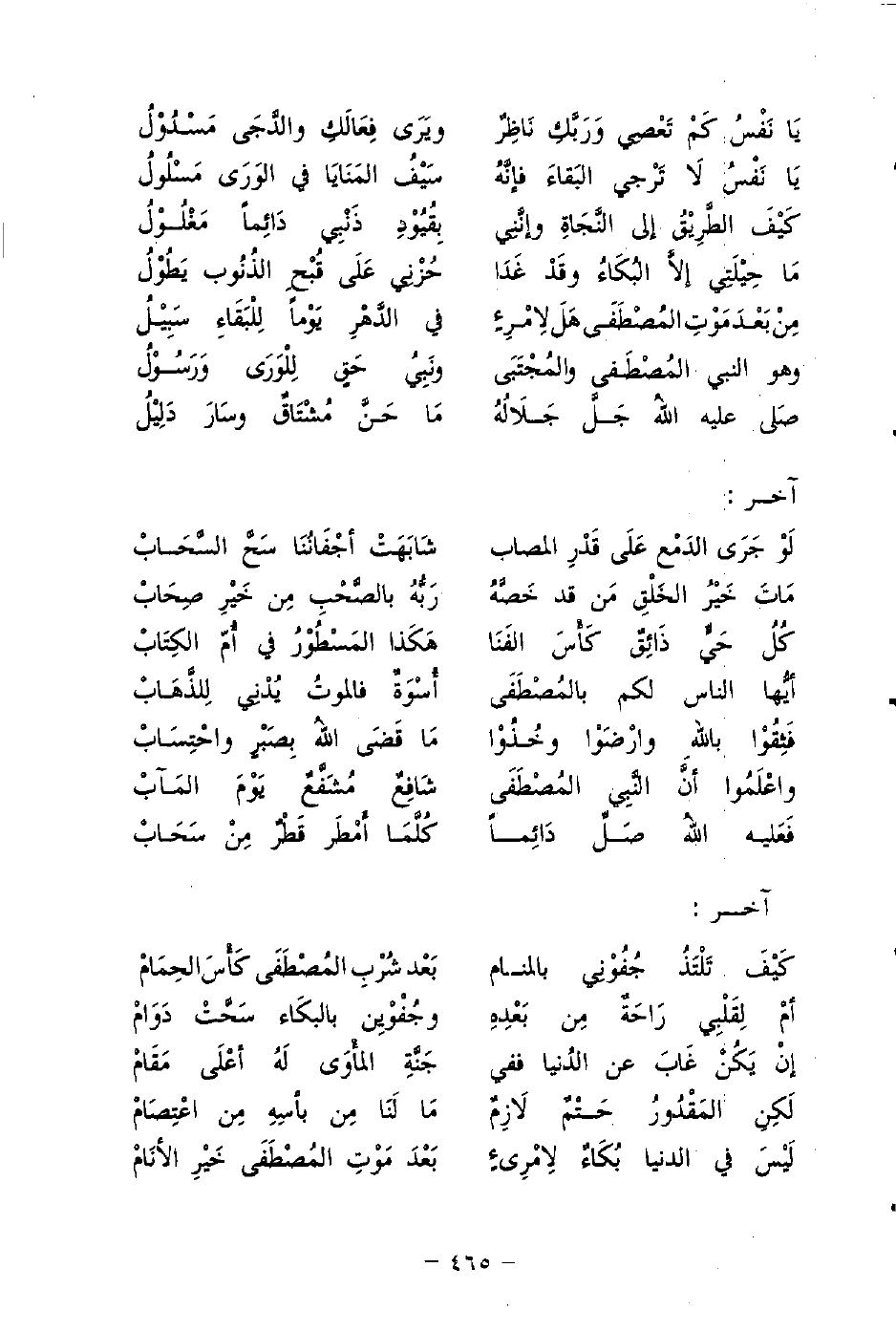 فَعَليه اللهُ صَلِّ دَائِمًا ... كُلَّمَا أَمْطَر قَطْرٌ مِنْ سَحَابْ