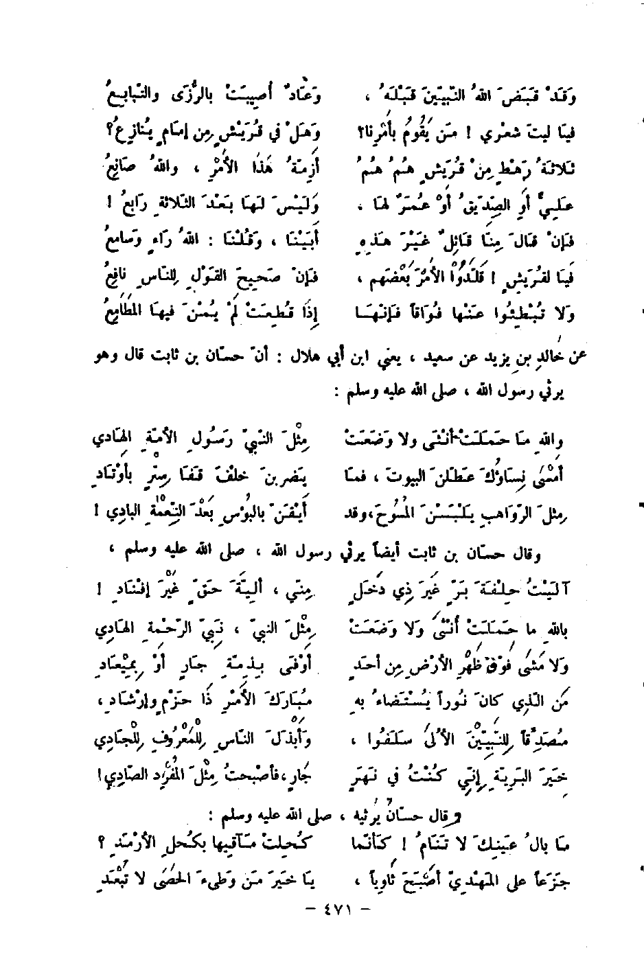 عن خالد بن يزيد عن سعيد، يعني ابن أبي هلال، أن حسان بن ثابت قال وهو يرثي رسول الله صلى الله عليه وسلم: