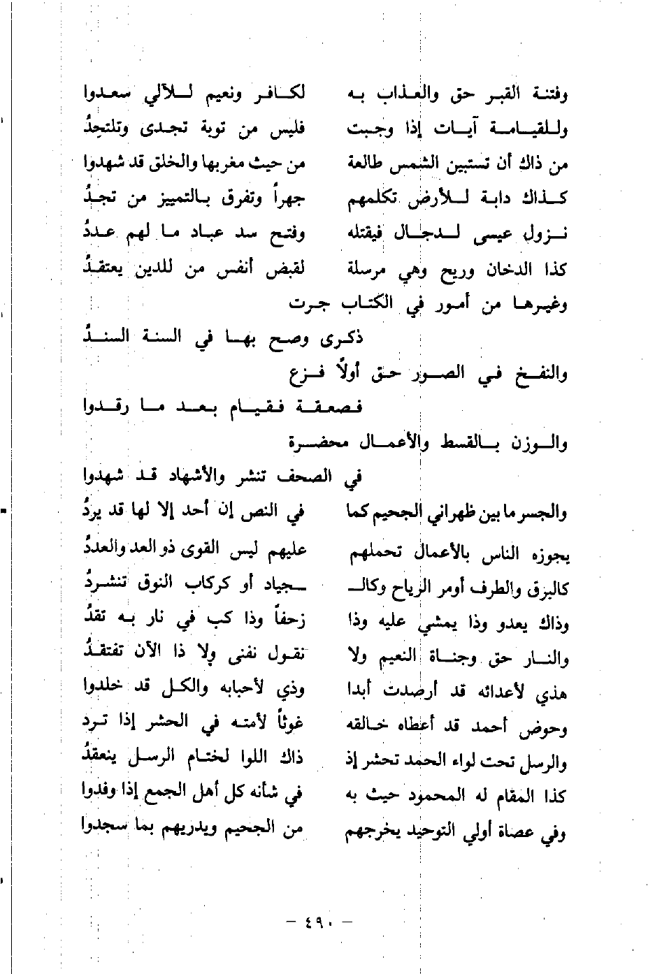 وفتنة القبر حقٌّ والعذاب به ... لكافر ونعيم للألي سعدوا