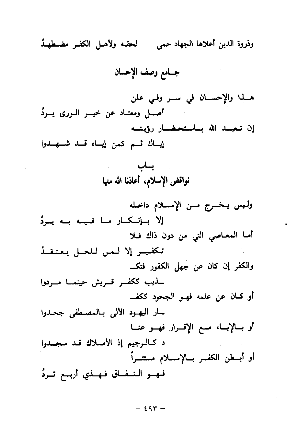 أو أبطن الكفر بالإسلام مستترًا ... فهو النفاق فهذي أربع تَردُ