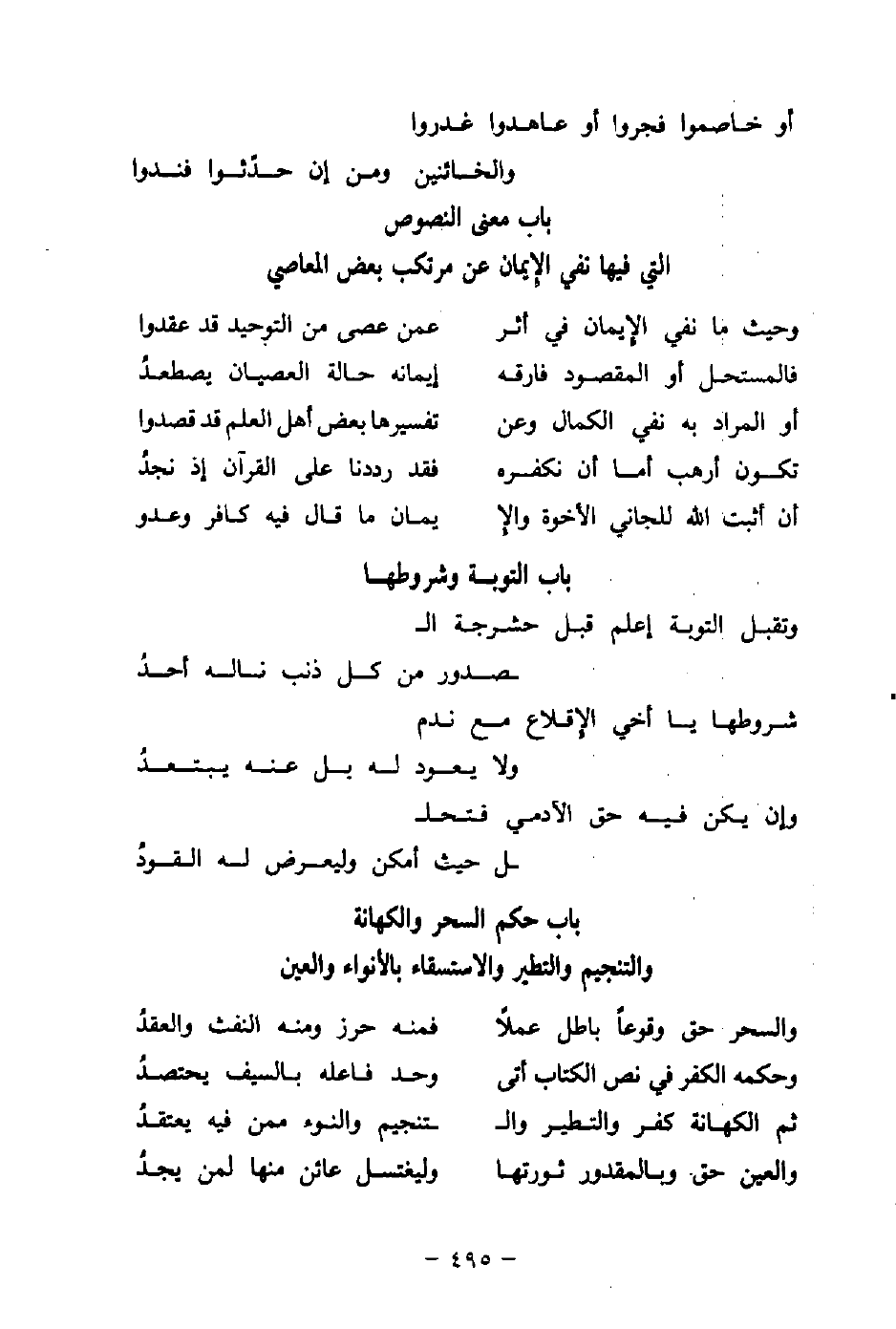ثم الكهانة كفرٌ والتطير والـ ... ـتنجيم والنوء ممَّن فيه يعتقدُ