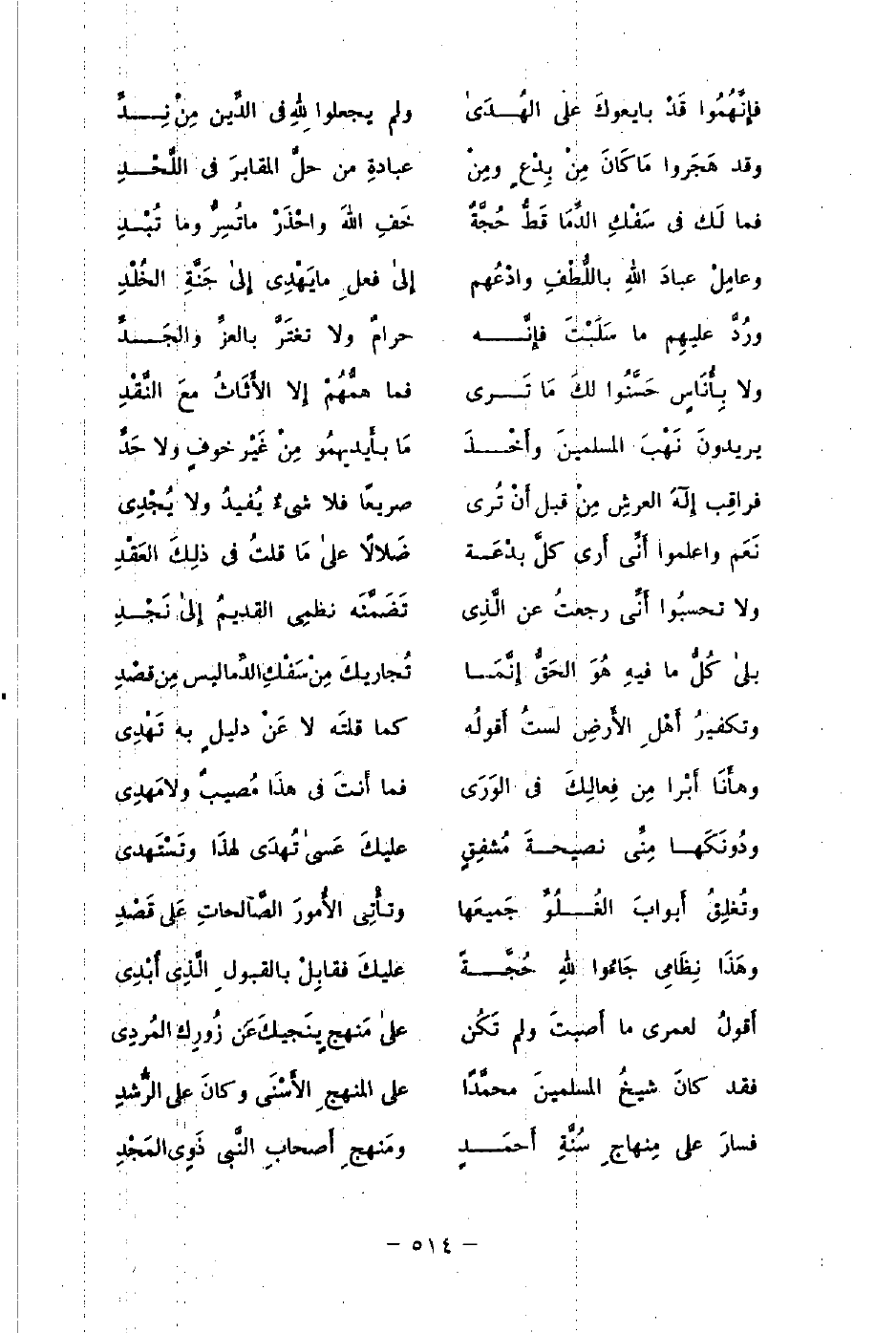 فقد كانَ شيخُ المسلمينَ محمَّدًا ... على المنهج الأَسْنَى وكانَ على الرُّشدِ