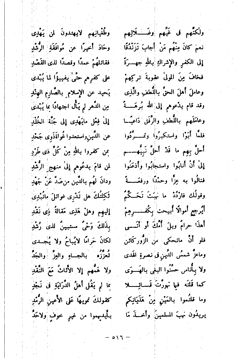 ولكنَّهم في غَيِّهم وَضلاَلِهم ... وطُغْيانِهم لا يهتدونُ لمن يَهْدِي