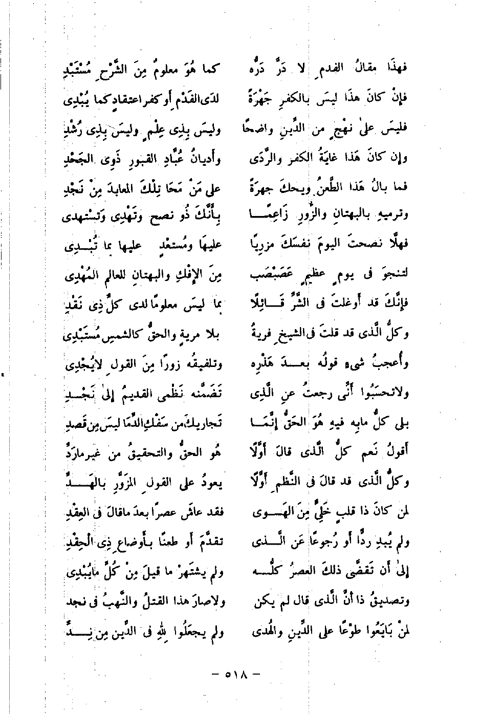 فإِنْ كانَ هذَا ليسَ بالكفرِ جَهْرَةً ... لدَى الفَدْمِ أَو كفر اعتقادٍ كما يُبْدِي