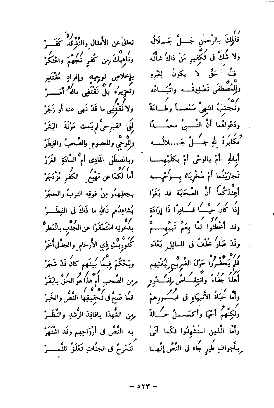 فَذَلِكَ بالرَّحمنِ جَلَّ جَلاَلُه ... تعالى عن الأَمثالِ والنِّدِّ قَدْ كَفَرْ