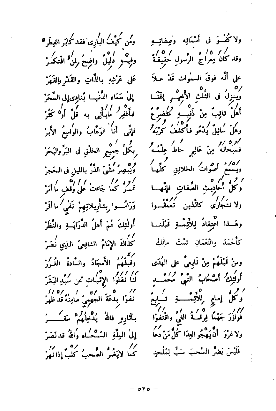 وهَذا اعْتِقادٌ لِلأَئِمَّةِ قَبْلَنا ... أُولئِكَ هُمْ أَهلُ الدِّرَايَةِ والنَّظَرْ