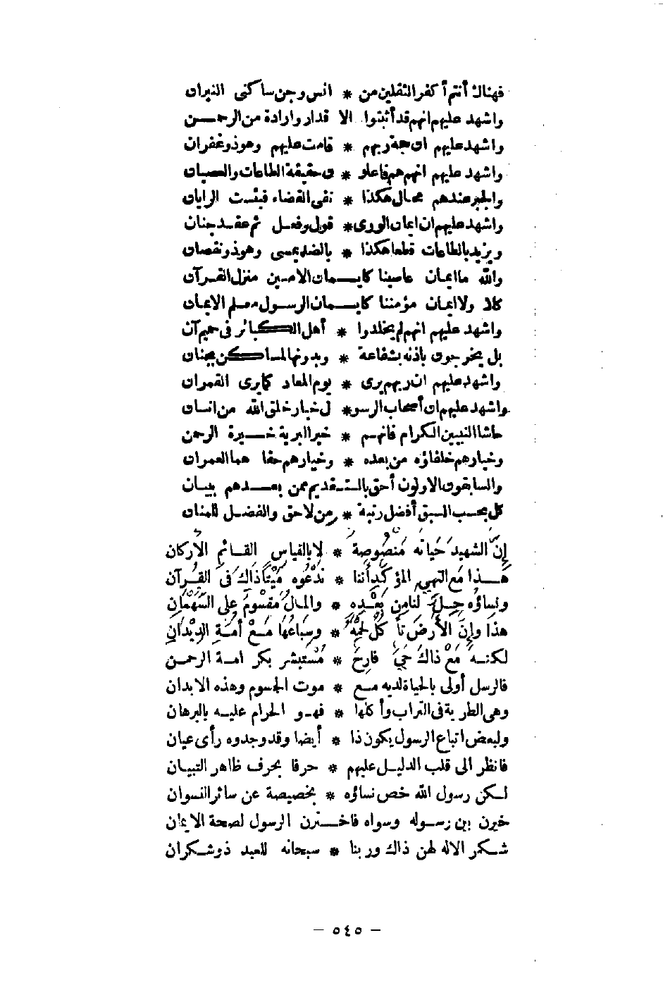 واشهد عليهم أنَّ إيمان الورى ... قول وفعل ثم عقد جنانِ