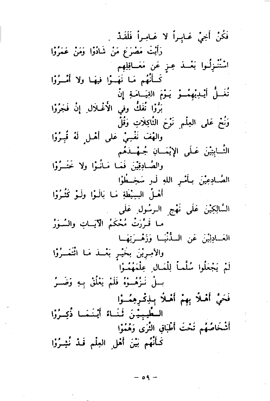 العَادِلِينَ عَن الدُّنْيَا وَزَهْرَتِهَا ... والآمِرِينَ بخَيرٍ بَعْدَ مَا ائْتَمَرُوا