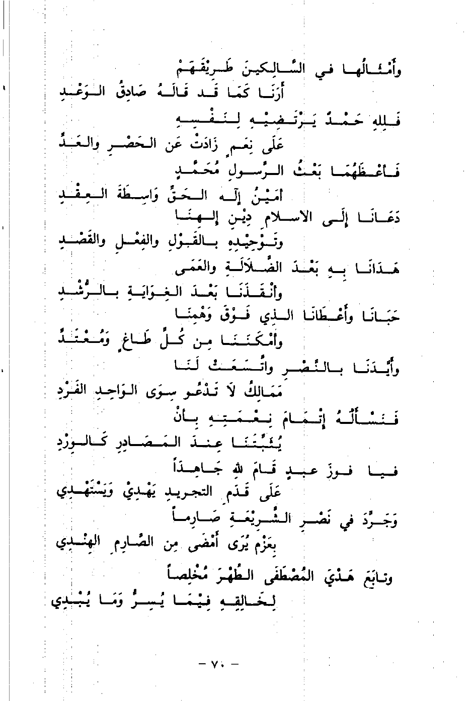 دَعَانَا إِلَى الإسلامِ دِينِ الهِنَا ... وتَوحِيدِهِ بِالقَولِ والفِعْلِ والقَصْدِ