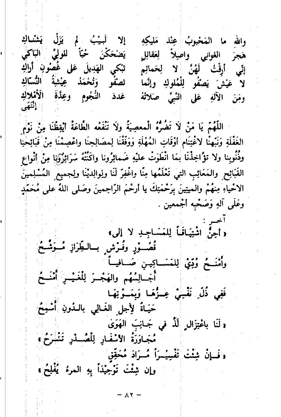 «أحِنُّ اشْتِيَاقًا لِلمَسَاجِدِ لا إلى» ... قُصُورٍ وفُرْشٍ بالطِّرَازِ مُوَشَّحُ