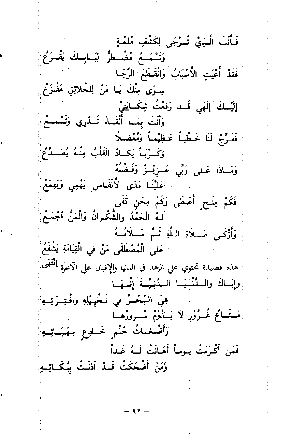 هذه قصيدة تحتوي على الزهد في الدنيا والإقبال على الآخرة: