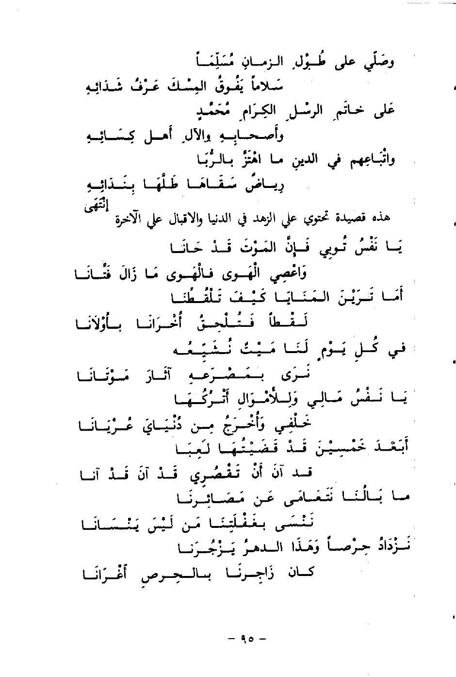 هذه قصيدة تحتوي على الزهد في الدنيا والإقبال على الآخرة: