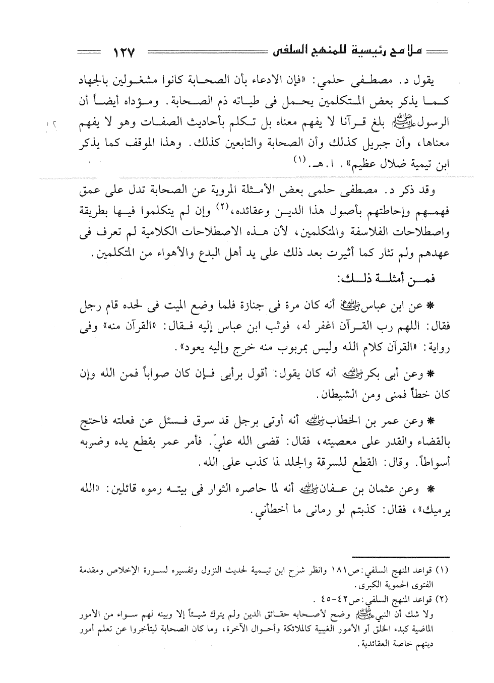 (1) - قواعد المنهج السلفي: ص181 وانظر شرح ابن تيمية لحديث النزول وتفسيره لسورة الإخلاص ومقدمة الفتوى الحموية الكبرى.