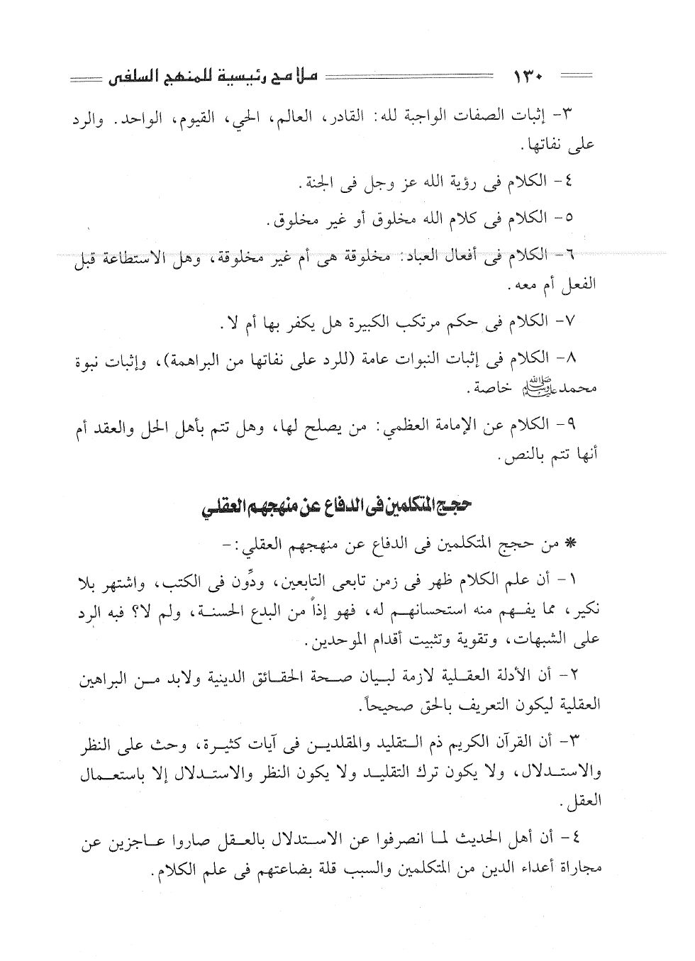 8- الكلام في إثبات النبوات عامة (للرد على نفاتها من البراهمة) ، وإثبات نبوة محمد - صلى الله عليه وسلم - خاصة.