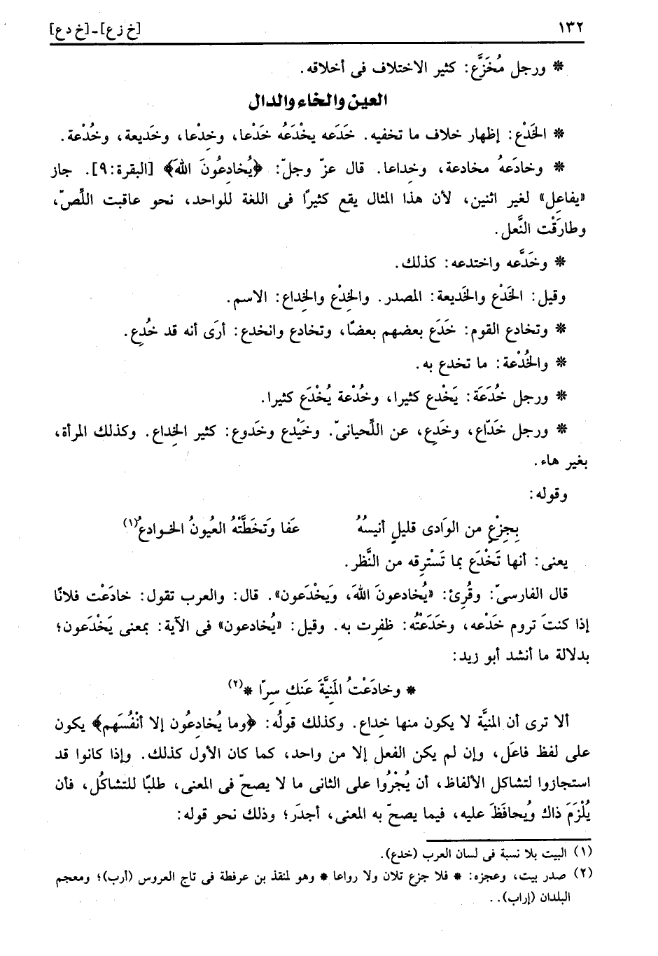 ومنكب خاضع وأخْضَعُ: مطمئن. ونعام خَواضع: مميلة رءوسها إِلَى الأَرْض، إِلَى مراعيها، وَكَذَلِكَ الضباء، قَالَ: