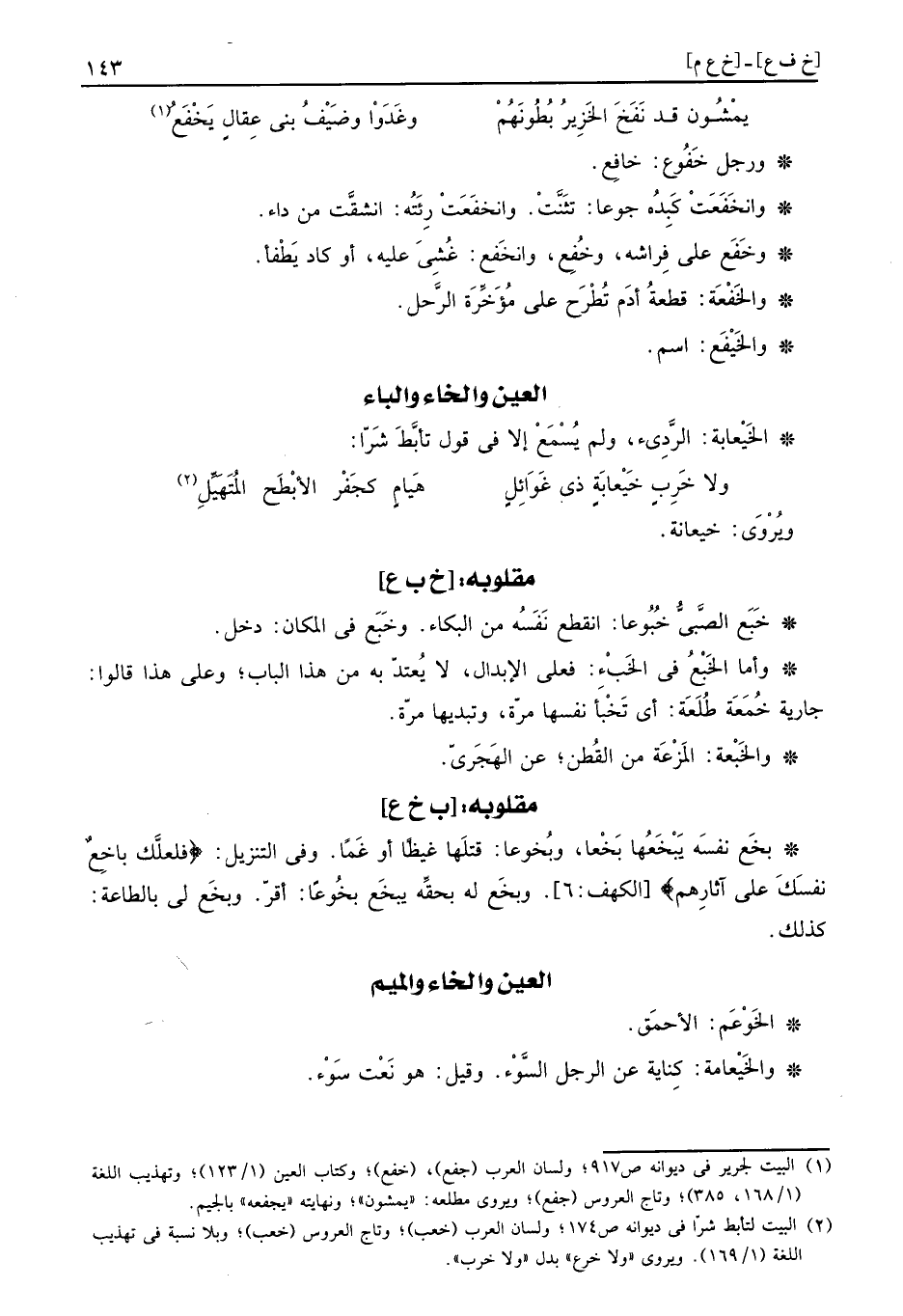 وَرجل خانع: فَاجر. وَالْجمع خَنَعة، وَكَذَلِكَ خَنُوع، وَالْجمع خُنُع. قَالَ الْأَعْشَى: