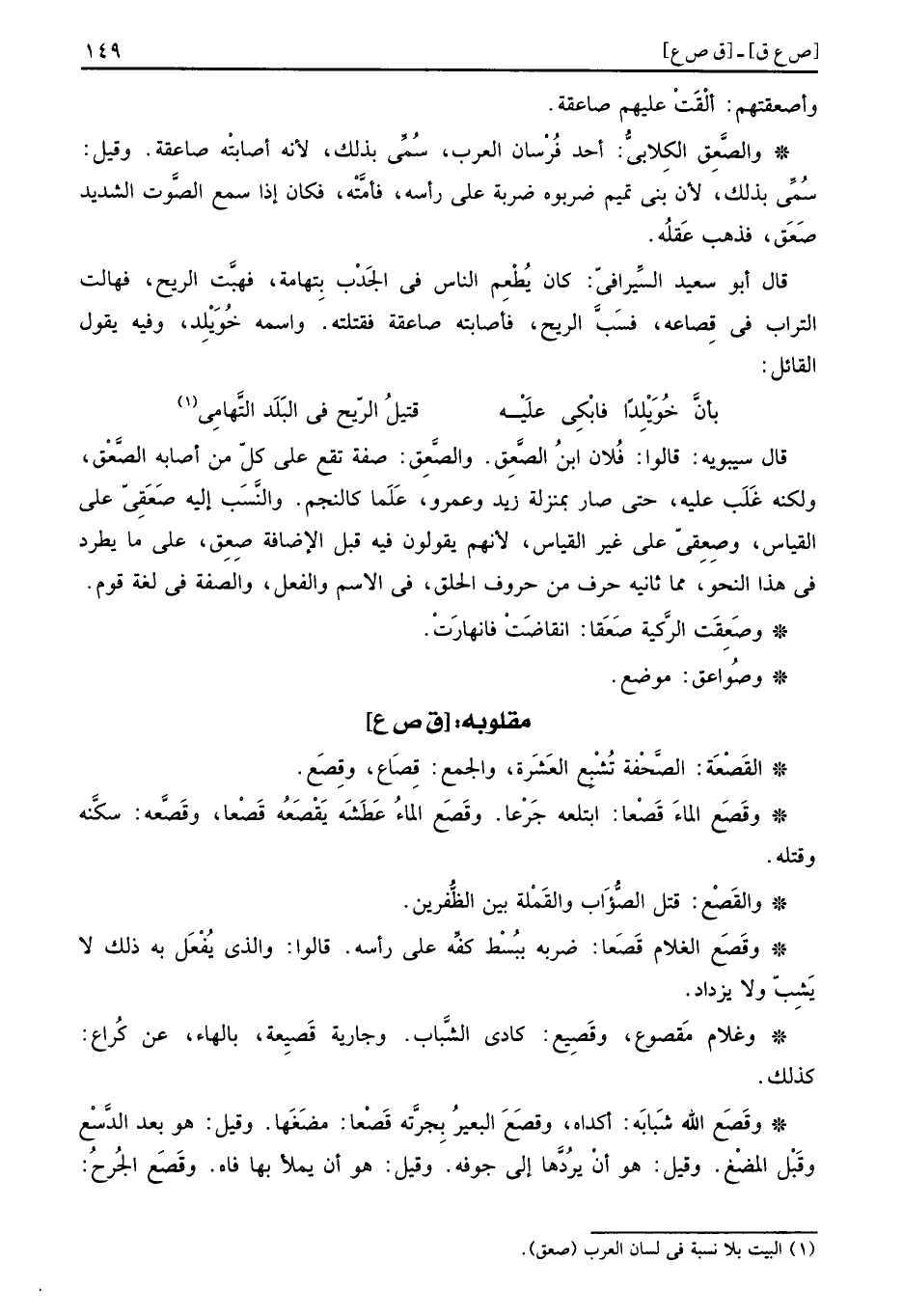 والإقعاص: أَن تضرب الشَّيْء أَو ترميه، فَيَمُوت مَكَانَهُ. وأقعصَ الرجل: أجهز عَلَيْهِ، وَالِاسْم مِنْهُمَا القِصْعة، عَن ابْن الْأَعرَابِي.