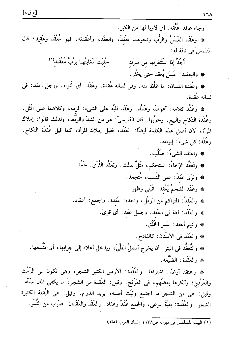 والعِقْد: الْخَيط ينظم فِيهِ الخرز، وَالْجمع عُقود. وَقد اعْتَقد الدّرّ والخرز وَغَيره: إِذا اتخذ مِنْهُ عِقْدا. قَالَ عدي بن الرّقاع: