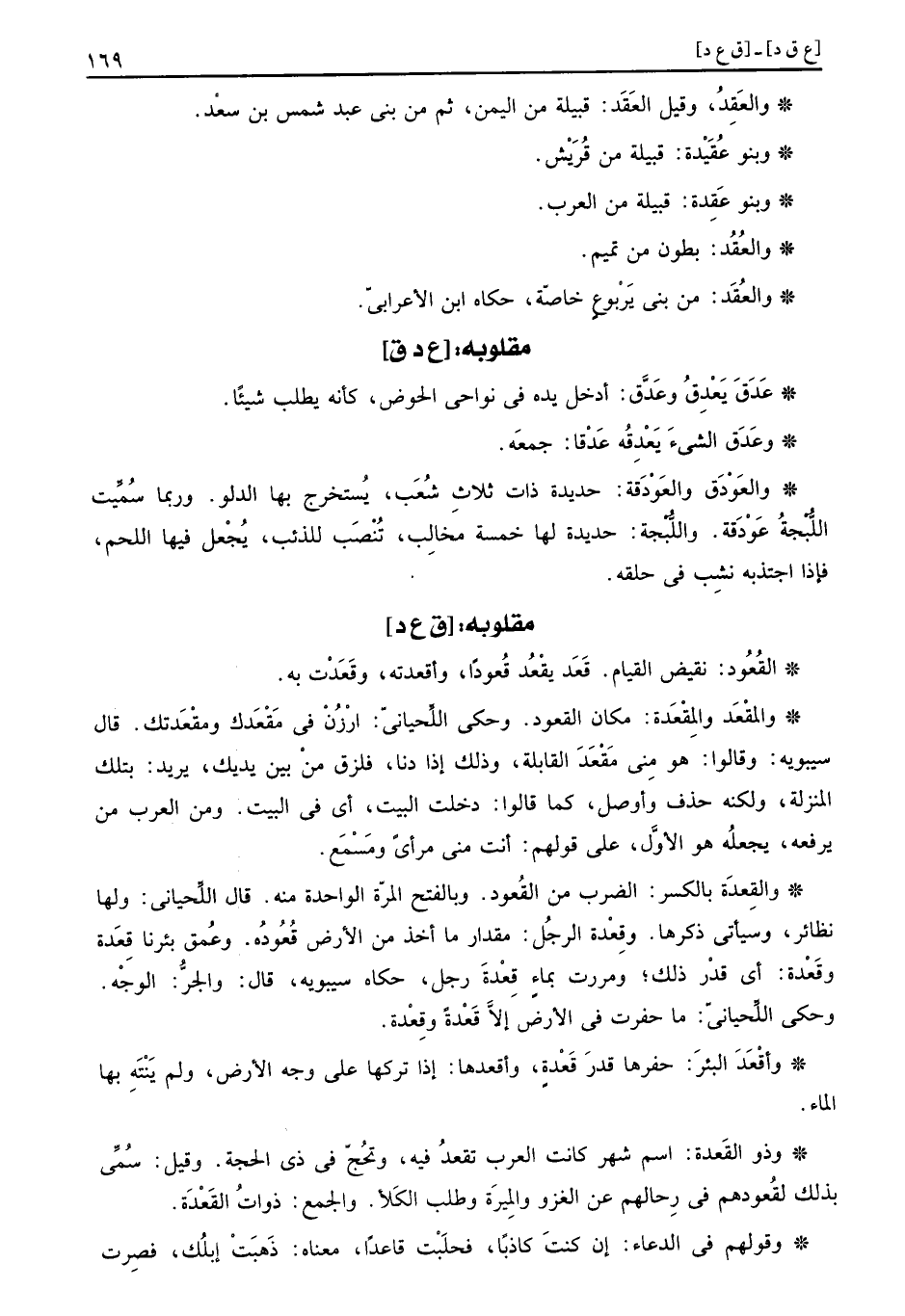 وظبية عَاقد: انعقَد طرف ذنبها. وَقيل: هِيَ العاطف. وَقيل: هِيَ الَّتِي رفعت رَأسهَا، حذرا على نَفسهَا، وعَلى وَلَدهَا.
