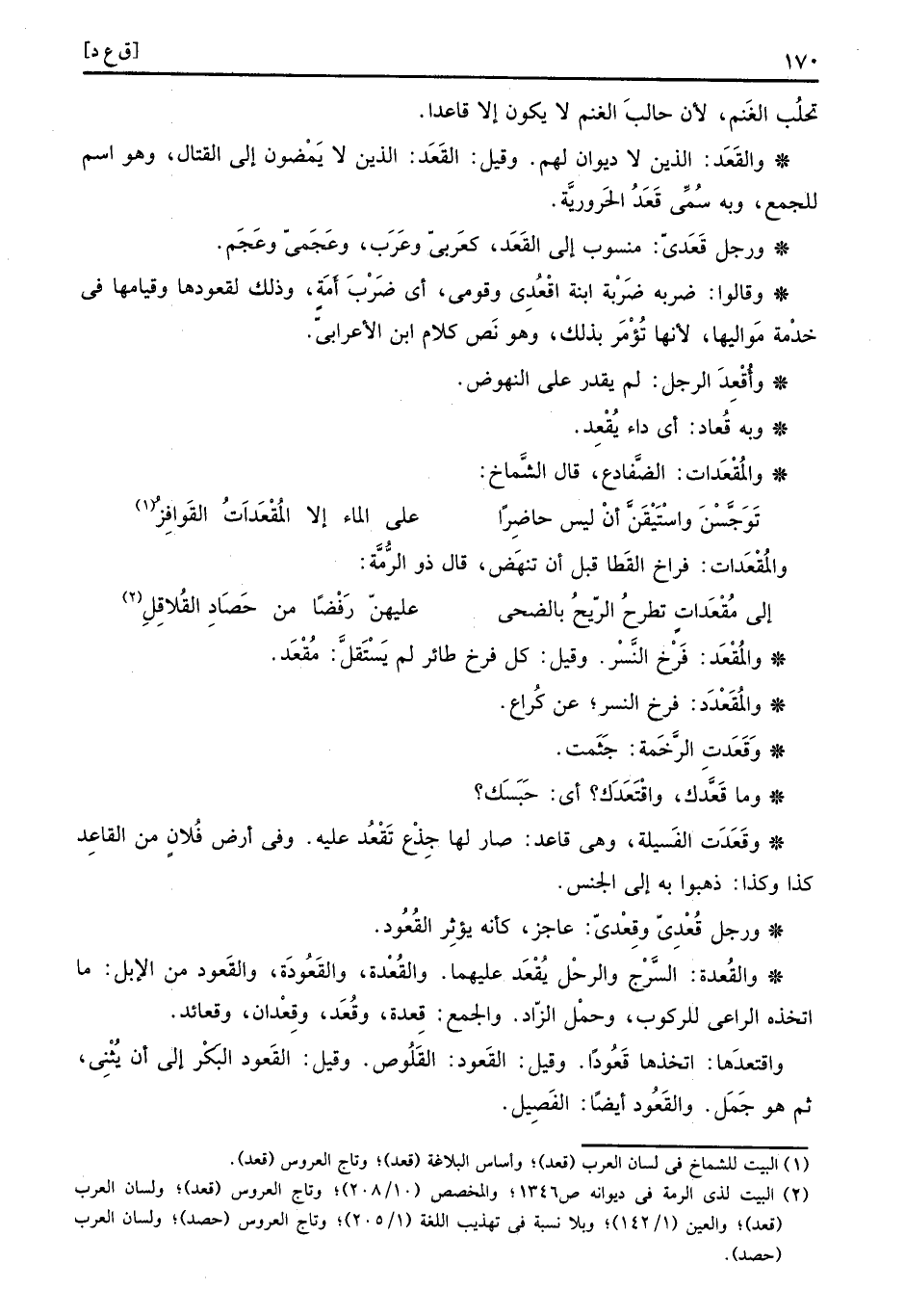 واعتقد ارضا: اشْتَرَاهَا. والعُقْدة: الأَرْض الْكَثِيرَة الشّجر، وَهِي تكون من الرمث والعرفج، وانكرها بَعضهم، فِي العرفج. وَقيل: العُقدة من الشّجر: مَا يَكْفِي المَال سنته. وَقيل: هِيَ من الشّجر مَا اجْتمع وَثَبت اصله، يُرِيد الدَّوَام. وَقيل: هِيَ الْبقْعَة الْكَثِيرَة الشّجر. والعُقْدة: بَقِيَّة المرعى، وَالْجمع عُقَدٌ وعِقاد. والعَقَد والعَقَدان: ضرب من التَّمْر.