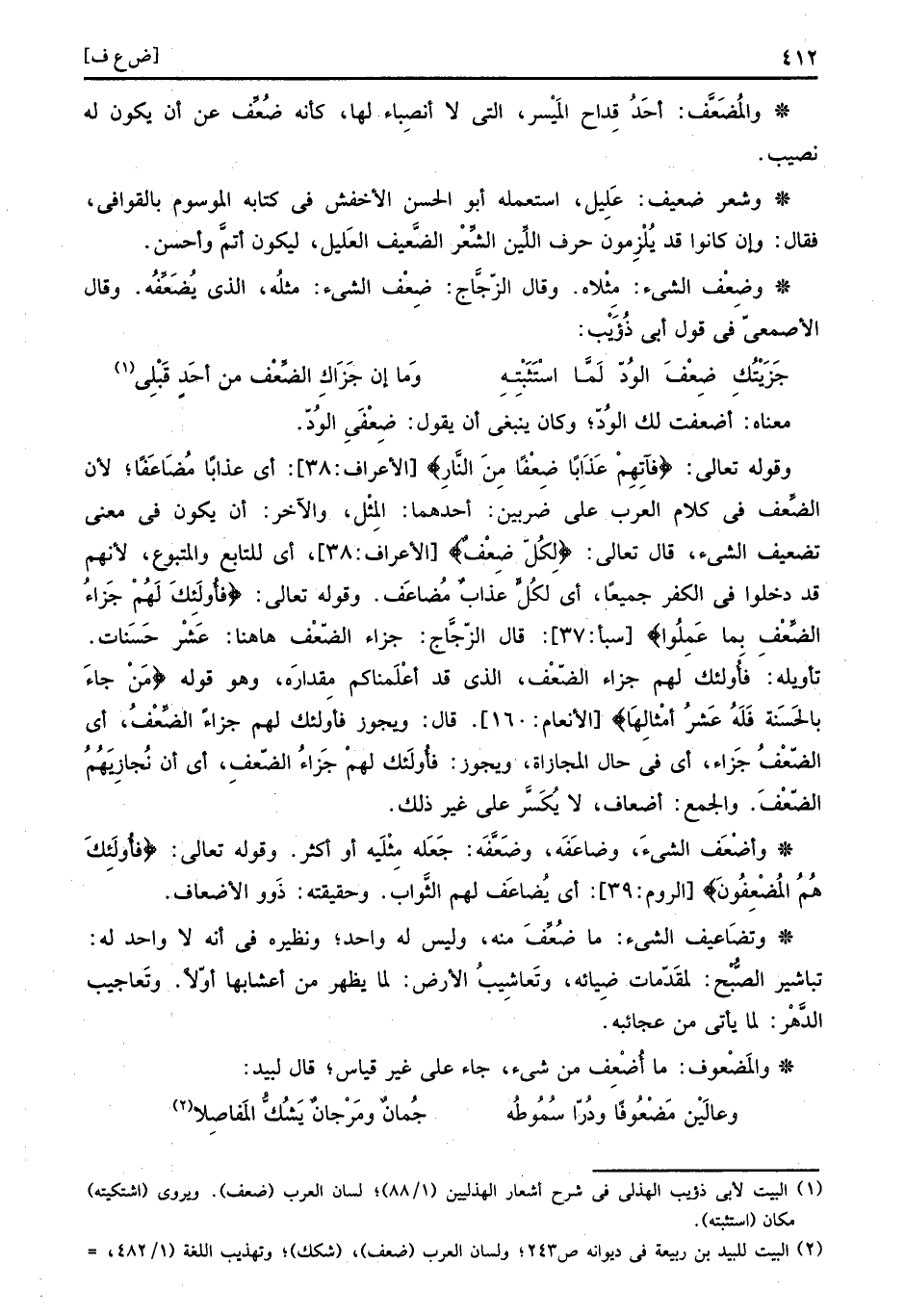 وقوس ضَليعٌ ومَضْلُوعة: فِي عودهَا عطف وتقويم، وَقد شاكل سائرها كَبِدهَا. حَكَاهُ أَبُو حنيفَة، وَأنْشد للمتنخل الْهُذلِيّ: