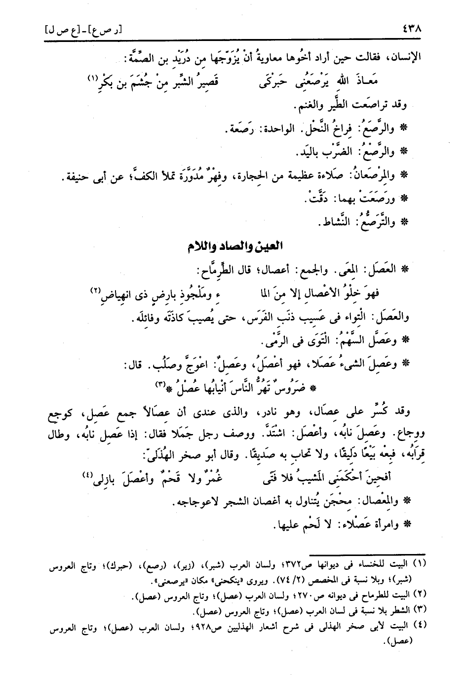 والرَّصَعُ: دقة الألية. وَرجل أرْصَع، وَامْرَأَة رَصْعاء. وَقد رَصِعَ رَصَعا، وَرُبمَا وصف بِهِ الذِّئْب. وَقيل: الرَّصْعاءُ من النِّسَاء: الَّتِي لَا إسكتين لَهَا.