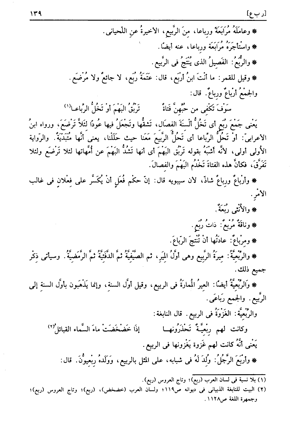 والرِّبْعِيَّة: الْغَزْوَة فِي الرّبيع. قَالَ النَّابِغَة: