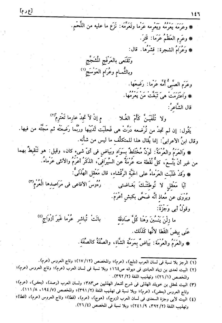 والعَرَمُ والعُرْمَة: بَيَاض بمرمة الشَّاة، وَالصّفة كالصفة.