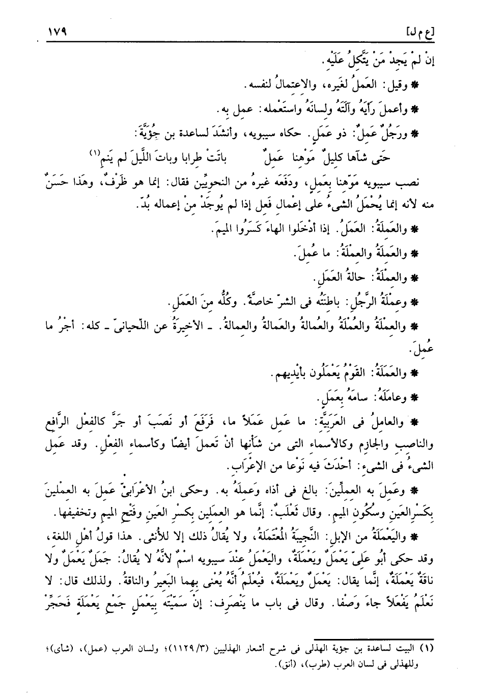 وَرجل عَمِلٌ: ذُو عَمَلٍ. حَكَاهُ سِيبَوَيْهٍ، وَأنْشد لساعد بن جؤية: