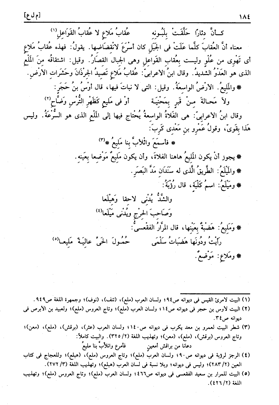 يجوز أَن يكون المليع هَاهُنَا الفلاة، وَأَن يكون مَلِيعٌ موضعا بِعَيْنِه.
