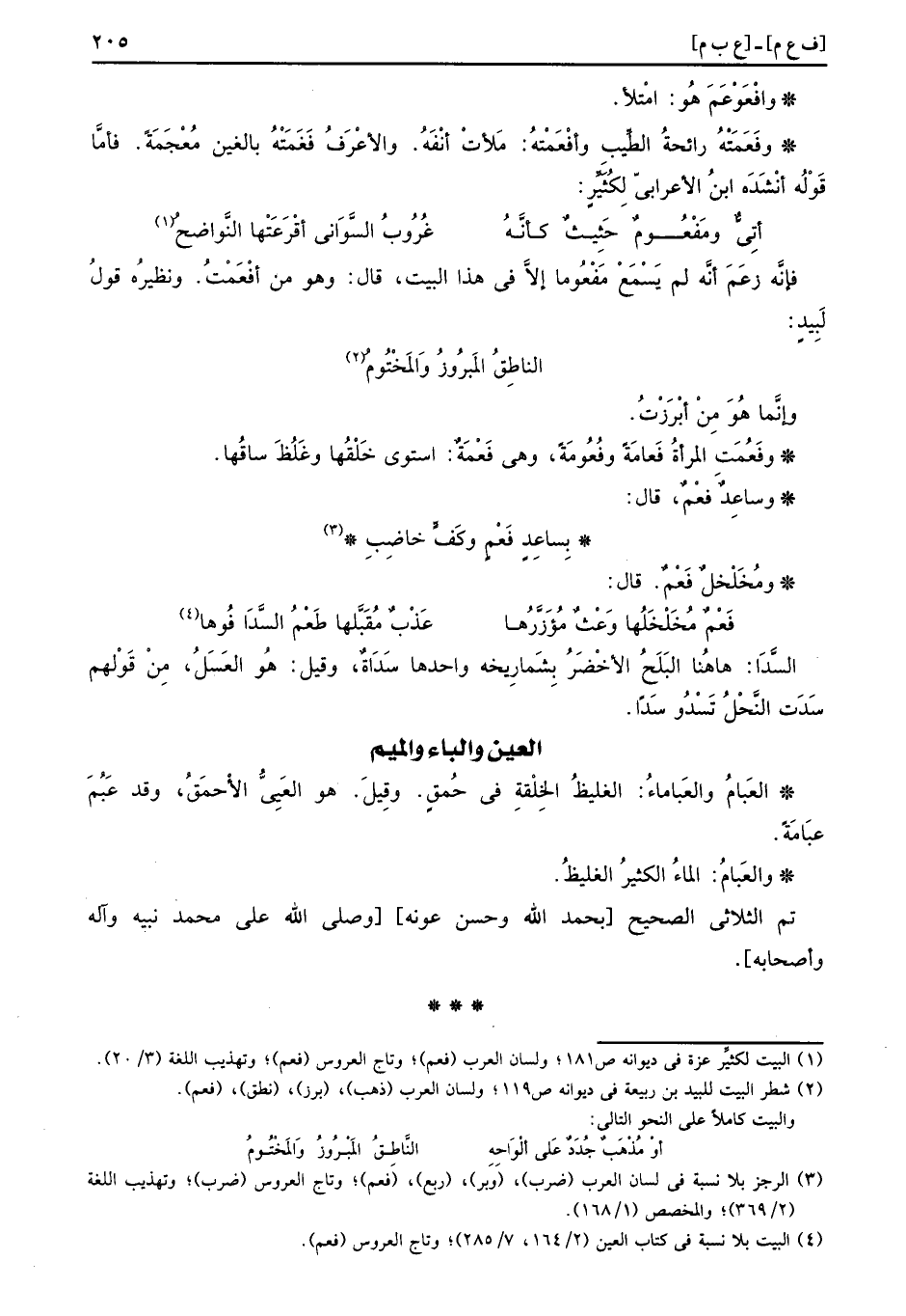 تمّ الثلاثي الصَّحِيح بِحَمْد الله وَحسن عونه وَصلى الله على مُحَمَّد نبيه وَآله وَأَصْحَابه
