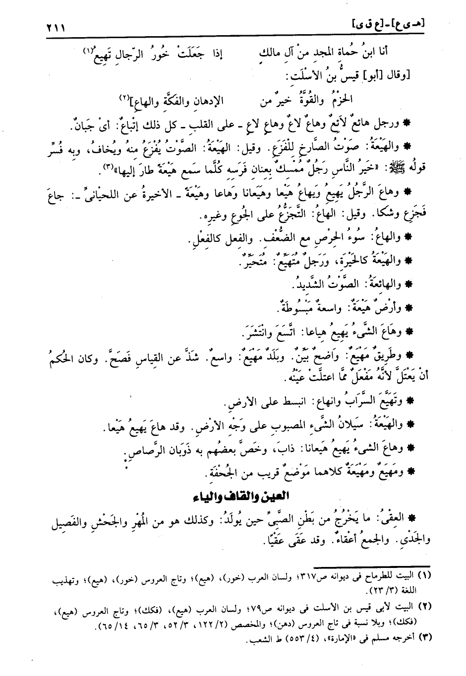 وَرجل هائعٌ لائِعٌ وهاعٌ لاعٌ وهاعٍ لاعٍ - على الْقلب - كل ذَلِك إتباع: أَي جبان.