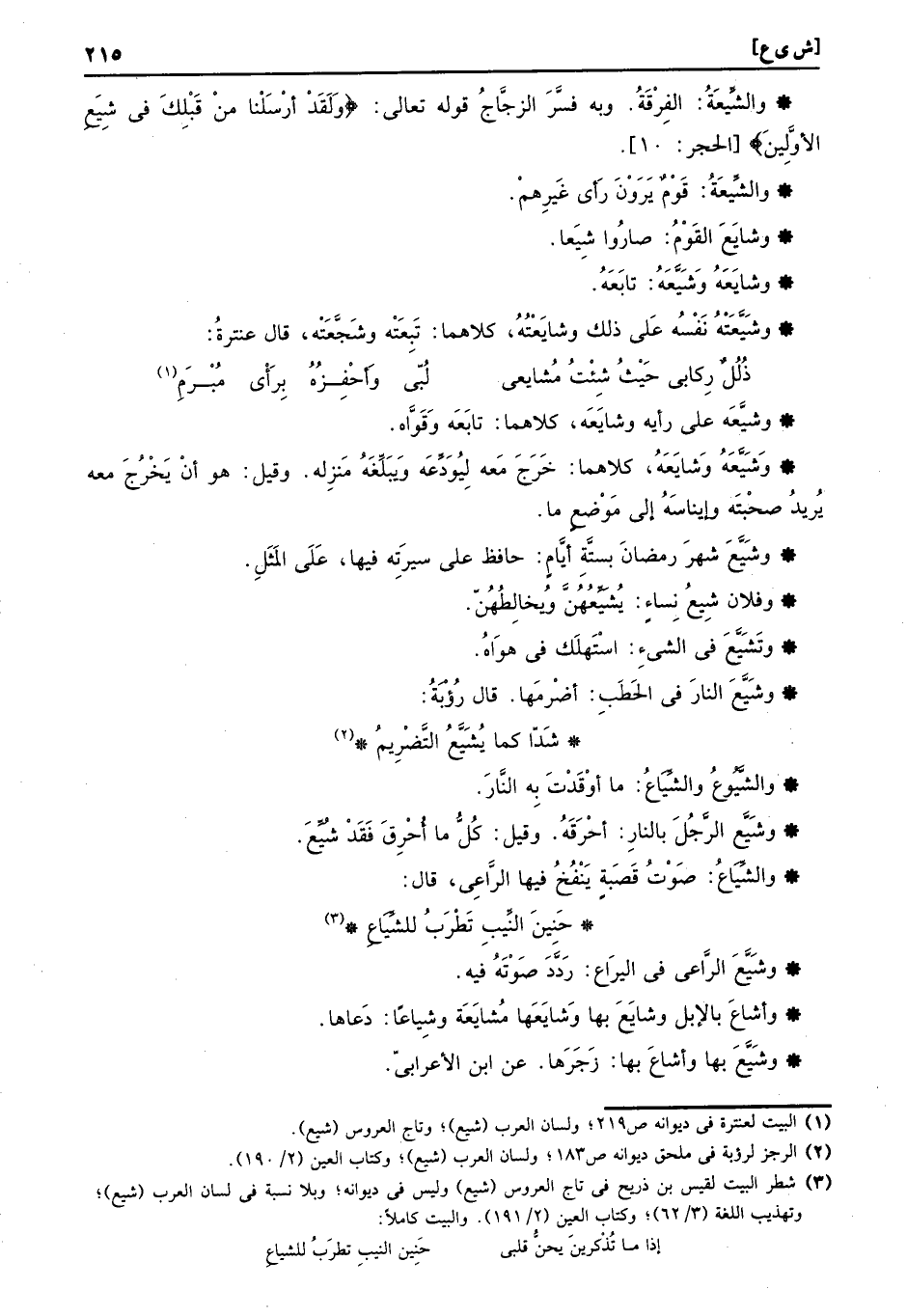 والشِّيَعُة: قوم يرَوْنَ رَأْي غَيرهم.