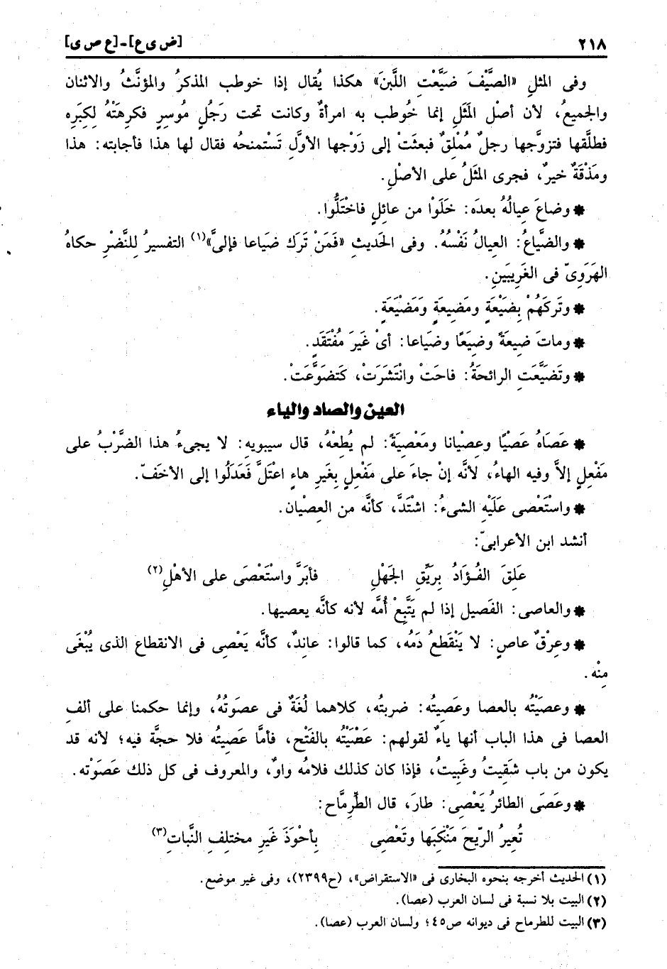 عَصَاهُ عَصْياً وعِصْيانا ومَعْصِيَةً: لم يطعه، قَالَ سِيبَوَيْهٍ: لَا يَجِيء هَذَا الضَّرْب على مَفْعِلٍ إِلَّا وَفِيه الْهَاء، لِأَنَّهُ إِن جَاءَ على مَفْعِلٍ بِغَيْر هَاء اعتل فعدلوا إِلَى الأخف.