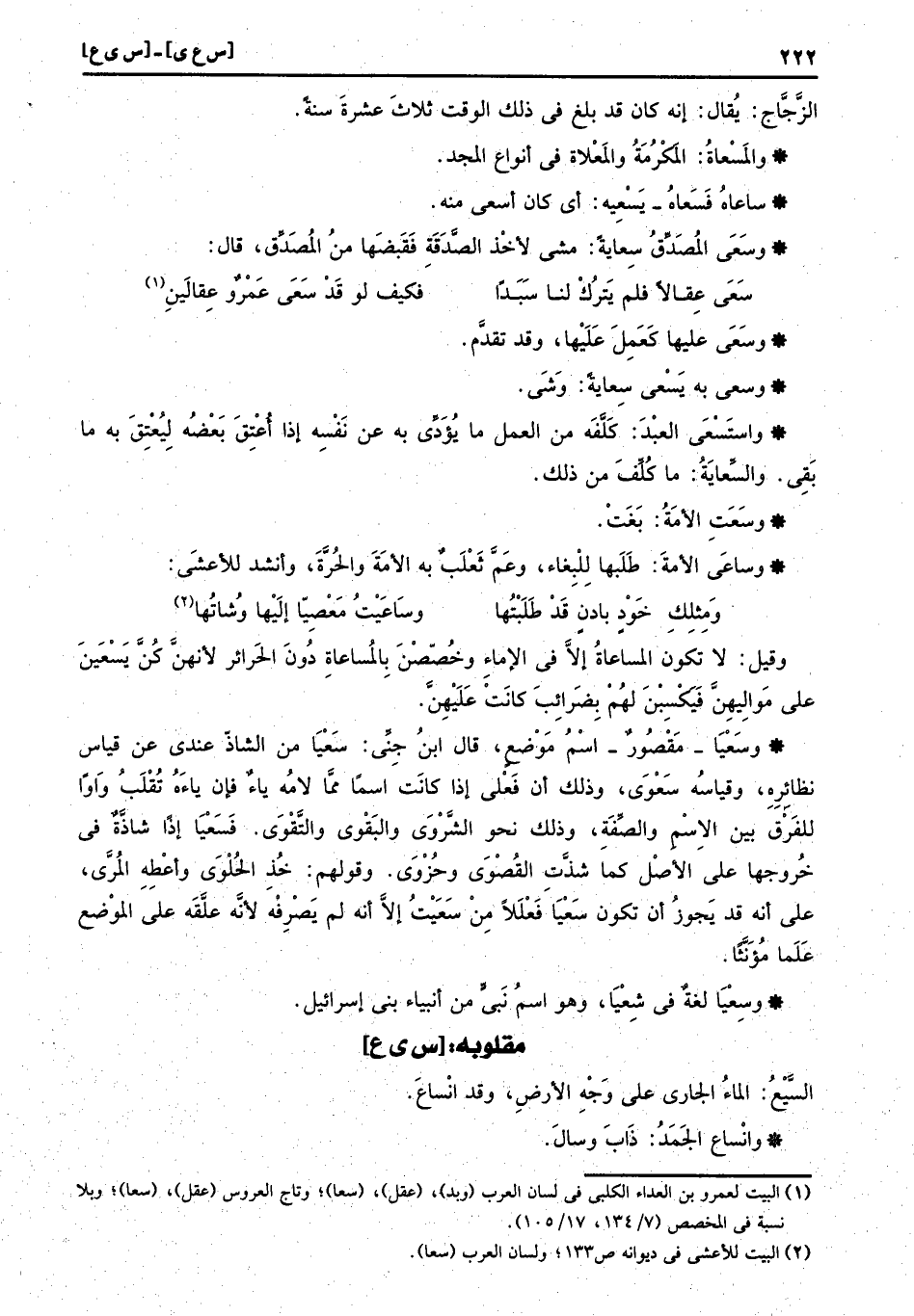 ساعاهُ فَسَعاهُ - يَسْعِيه: أَي كَانَ أسعى مِنْهُ وسَعَى الْمُصدق سِعايةً: مَشى لأخذ الصَّدَقَة فقبضها من الْمُصدق قَالَ: