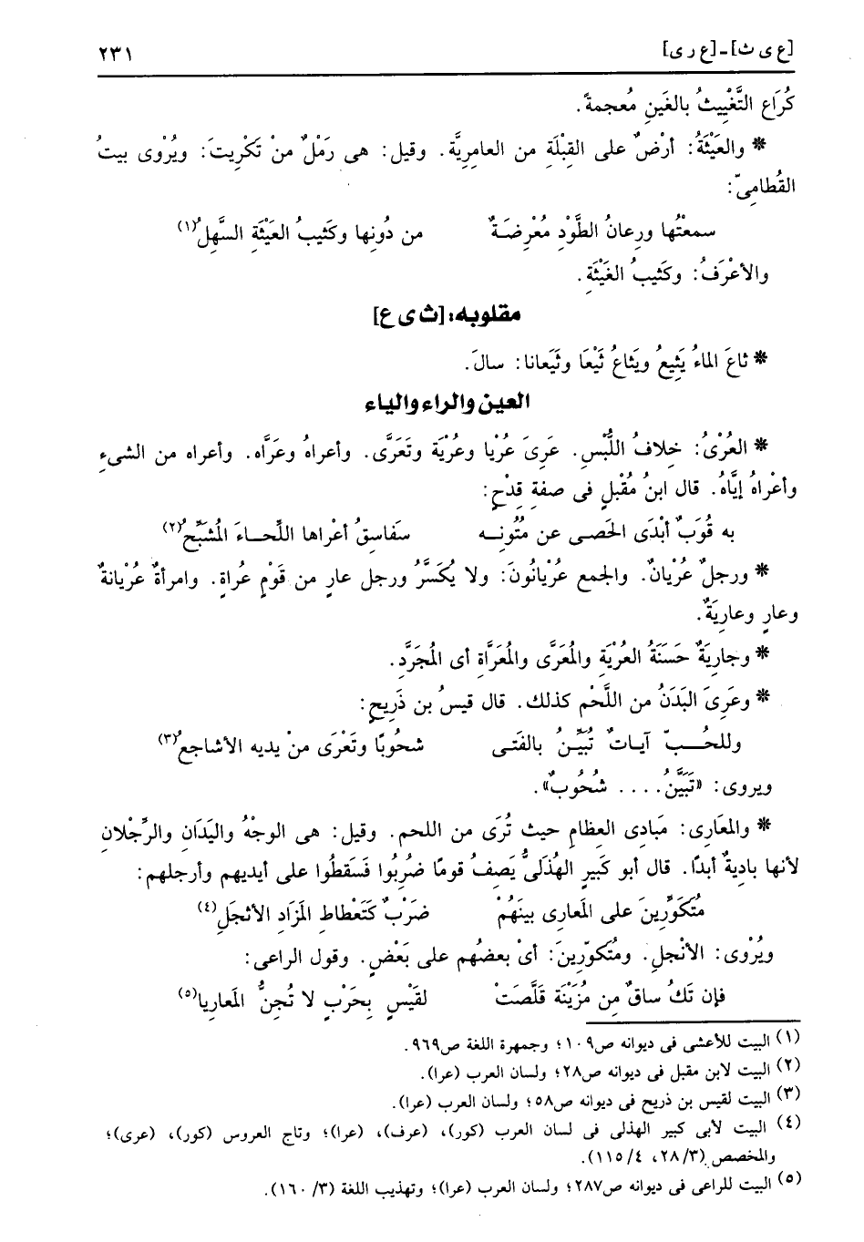 الْعين وَالرَّاء وَالْيَاء