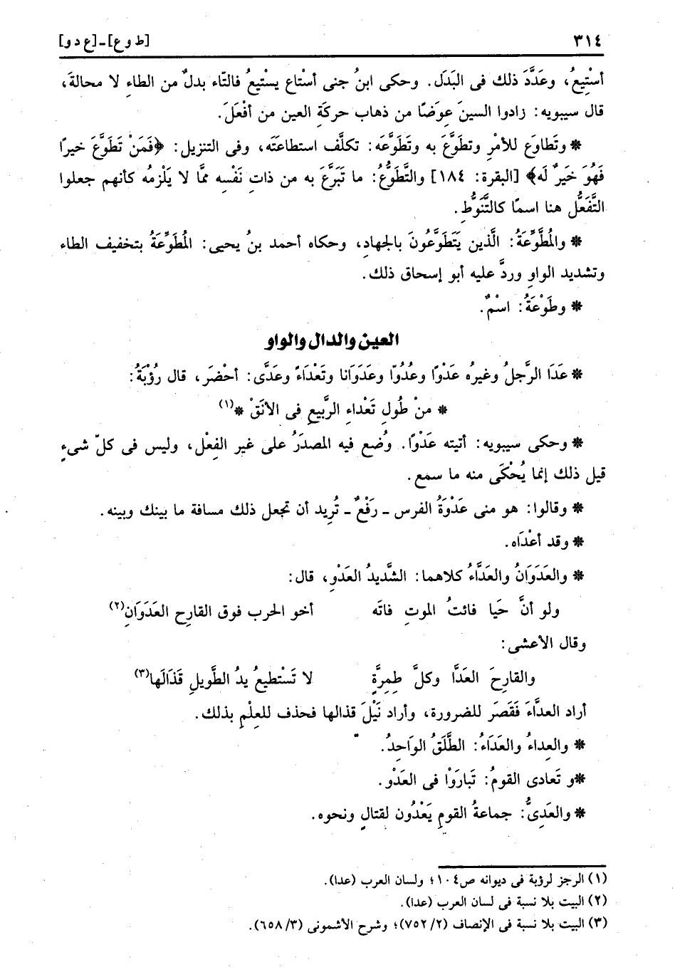 عَدَا الرجل وَغَيره عَدْواً وعُدُواًّ وعَدَوَانا وتَعْدَاءً وعَدَّى: أحْضَر، قَالَ رؤبة: