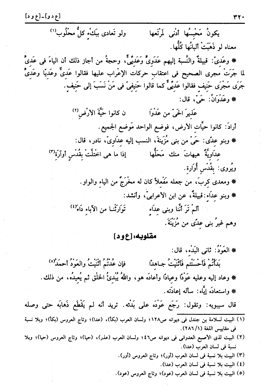 وَعَاد إِلَيْهِ وَعَلِيهِ عَوْداً وعِياداً وأعادَه هُوَ وَالله يبدئ الْخلق ثمَّ يُعِيدهُ، من ذَلِك.