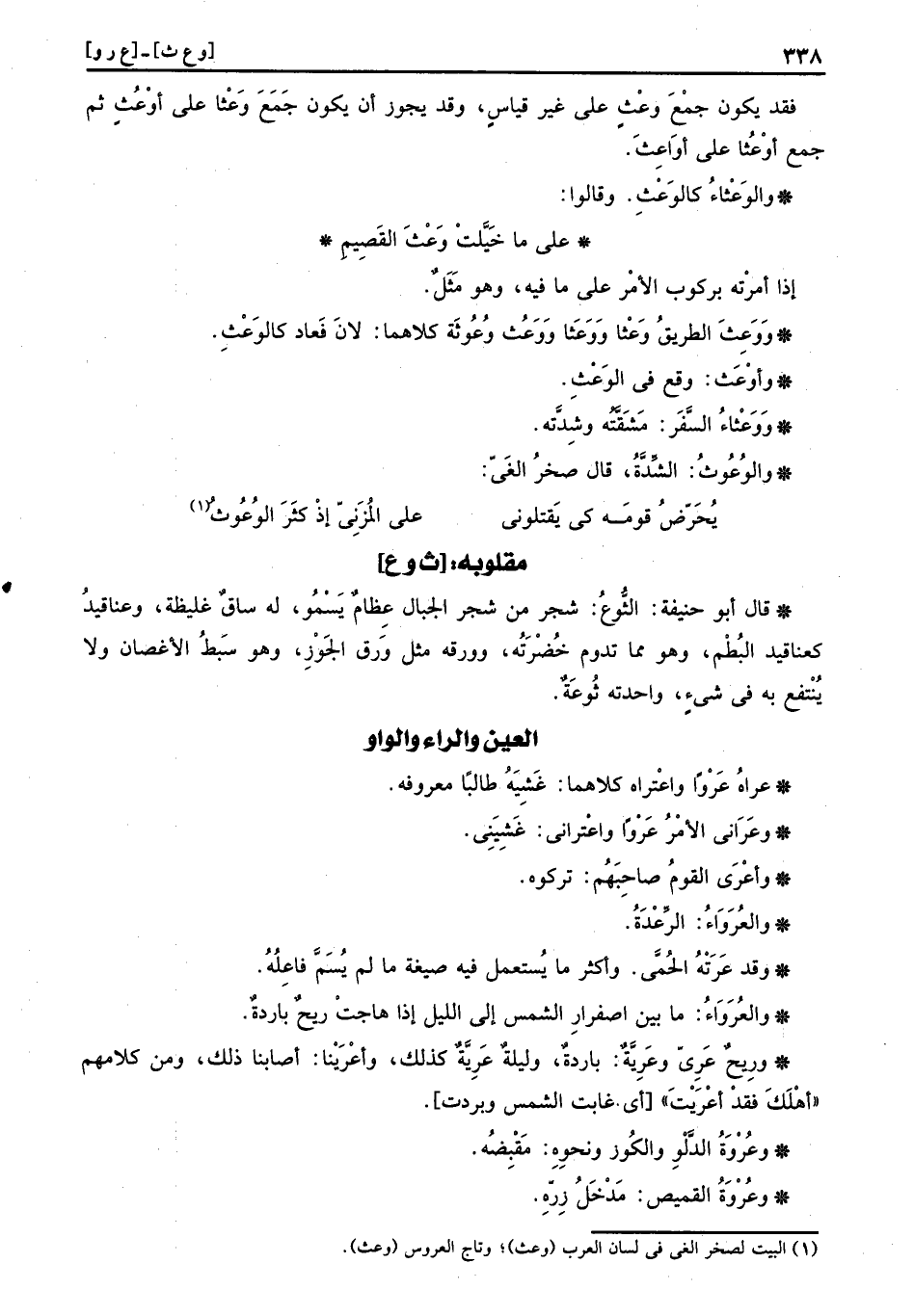 فقد يكون جمع وعْثٍ على غير قِيَاس، وَقد يجوز أَن يكون جمع وَعْثا على أوْعُثٍ ثمَّ جمع أوْعُثا على أوَاعِث.