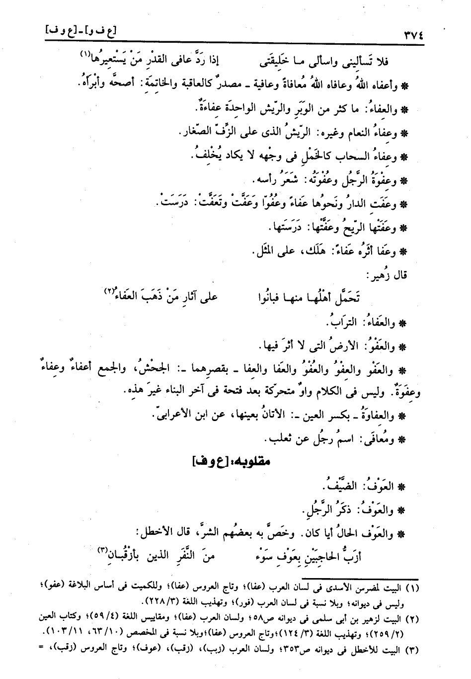 والعوف الْحَال ايا كَانَ. وَخص بِهِ بَعضهم الشَّرّ، قَالَ الاخطل: